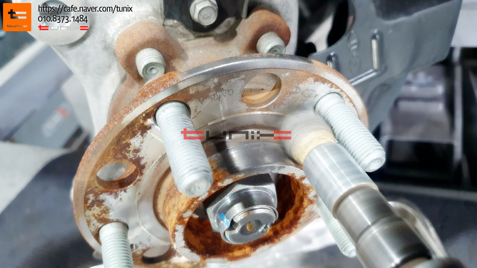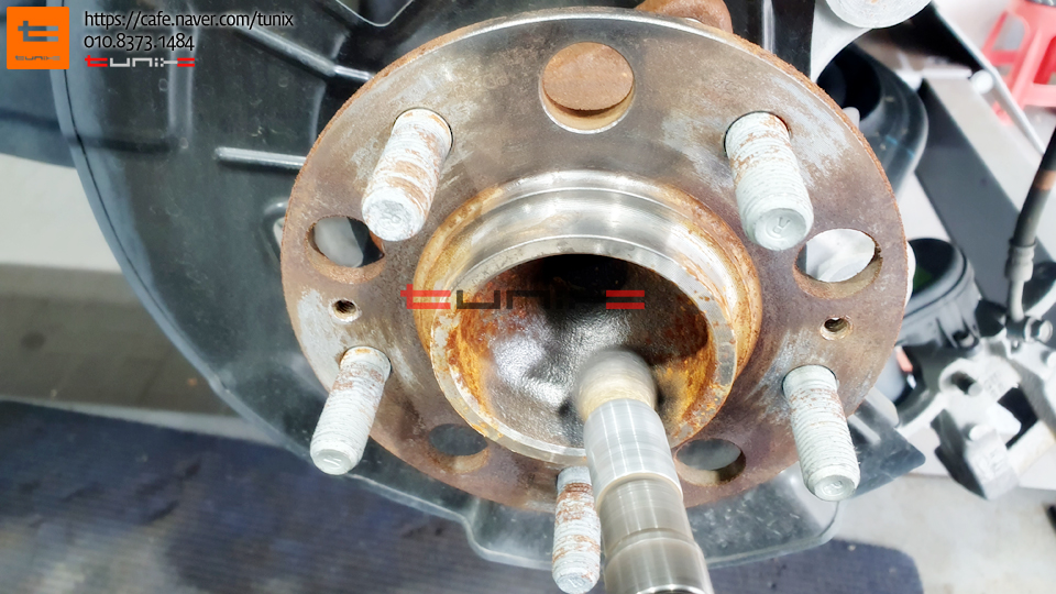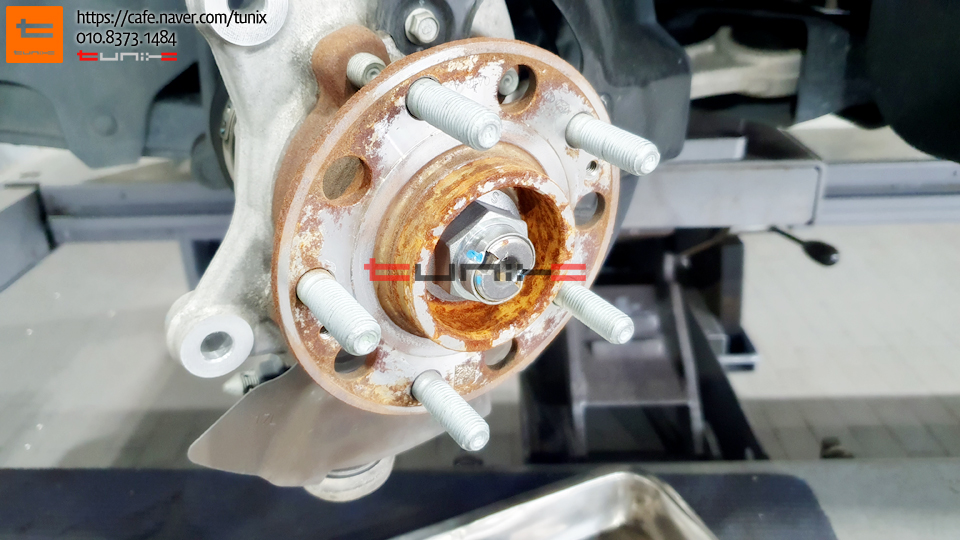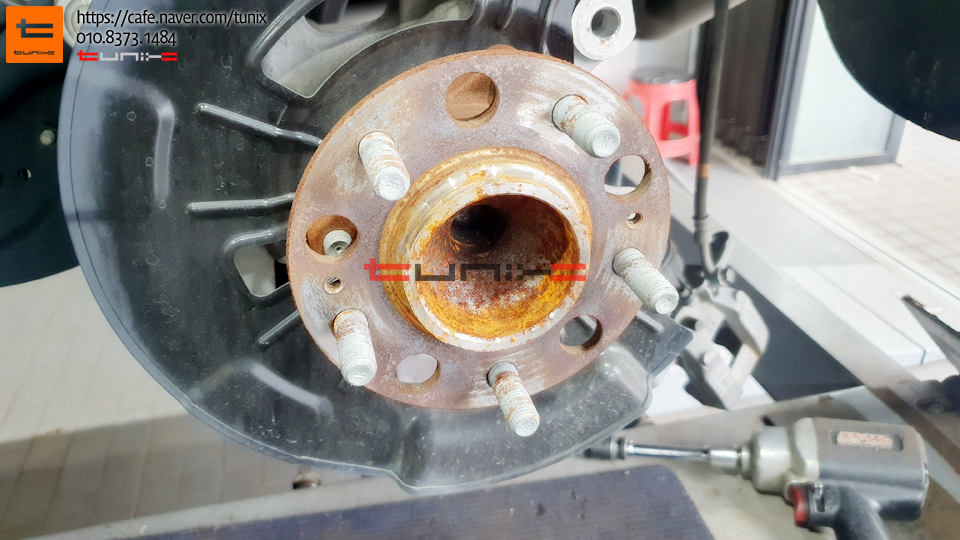 순정 브레이크를 탈착후 허브에 녹을 깨끗히 제거해줍니다