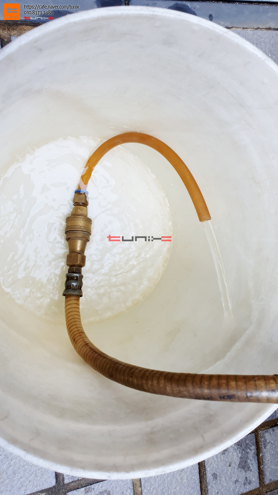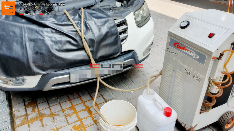 부동액 플러싱을 위해서 장비를 연결해줍니다