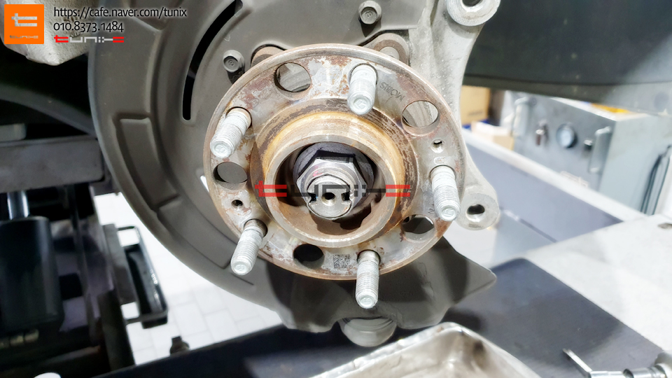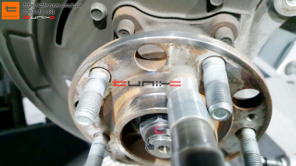 순정 브레이크를 탈착후 허브에 녹을 깨끗히 제거해줍니다
