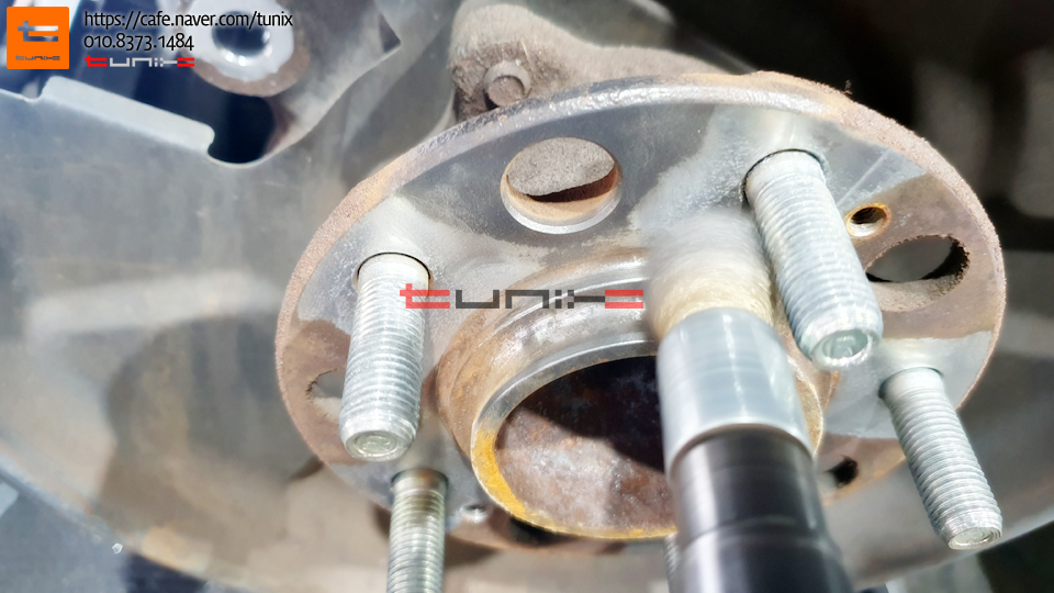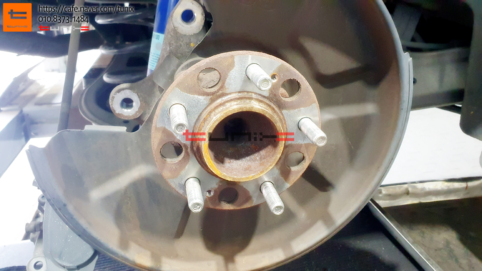 순정디스크 탈착하니 리어허브에 녹이 잔뜩있네요