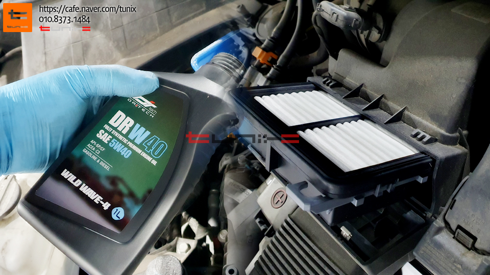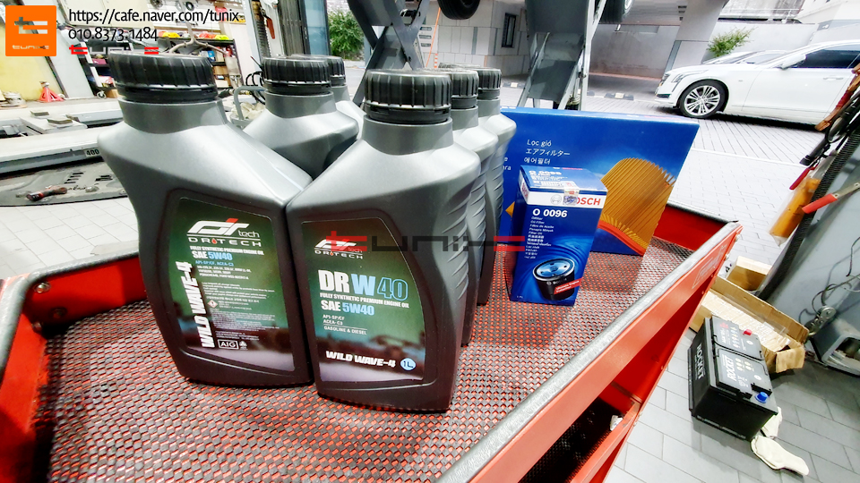 현재 할인중인 합성엔진오일 DR W40을 교체하기 위해서 튜닉스로 방문하였습니다