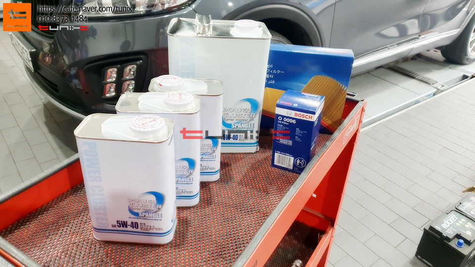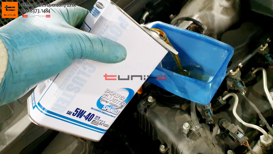 오일은 부드럽고 강한 합성유 파워클러스터 스팽글 5W40을 선택하였습니다
