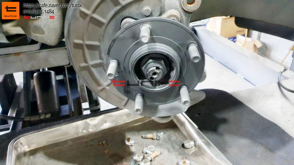 순정 브레이크를 탈착후 허브에 녹을 깨끗히 제거해줍니다