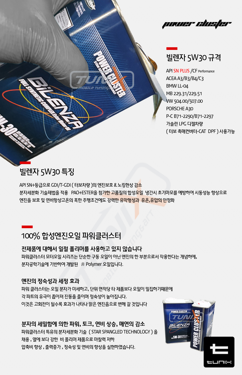파워클러스터 빌렌자 5W30 5W40 - SN플러스등급 : 튜닉스-TUNIX