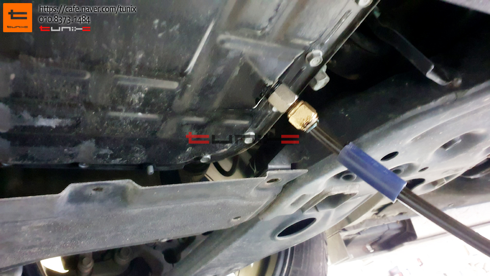 기존오일을 모두빼고 남아 있는 잔유는 전용드레인기를 이용하여 깔끔하게 제거해줍니다