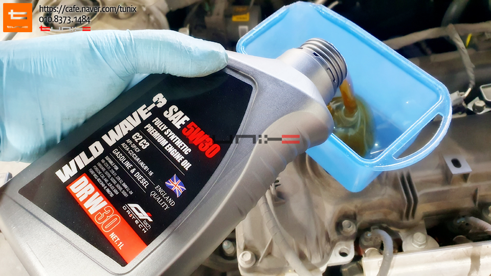 DR웨이브를 넣고 일차시동후 레벨링까지 해주면 오일 교환작업이 완료됩니다