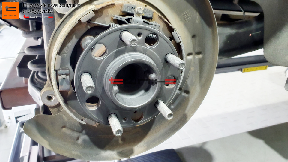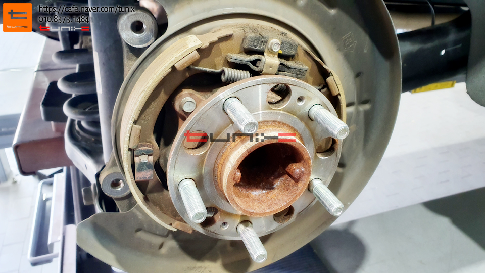 순정 브레이크를 탈착후 허브에 녹을 깨끗히 제거해줍니다