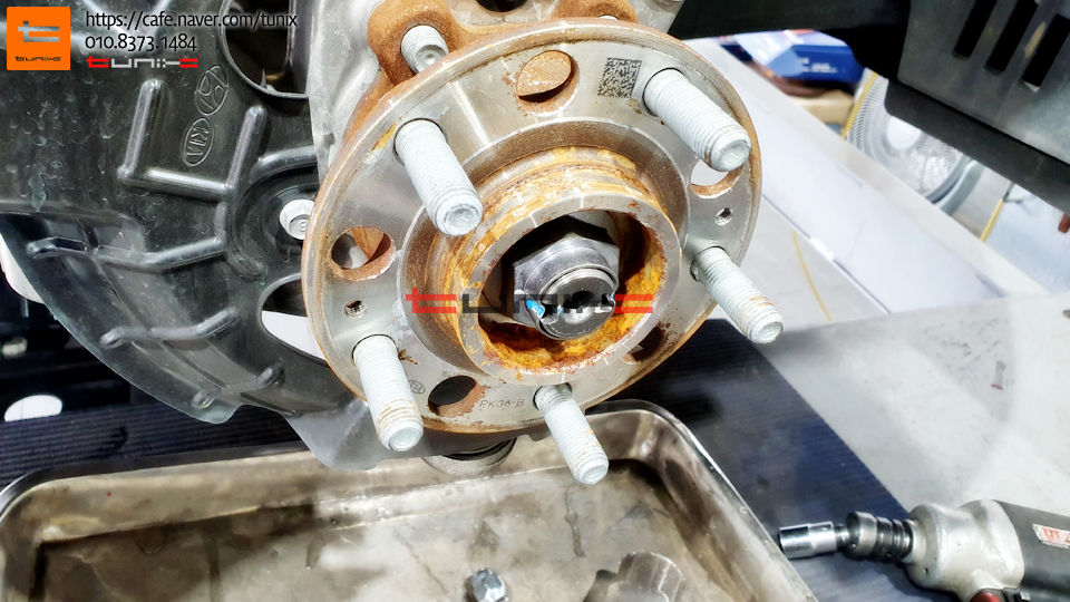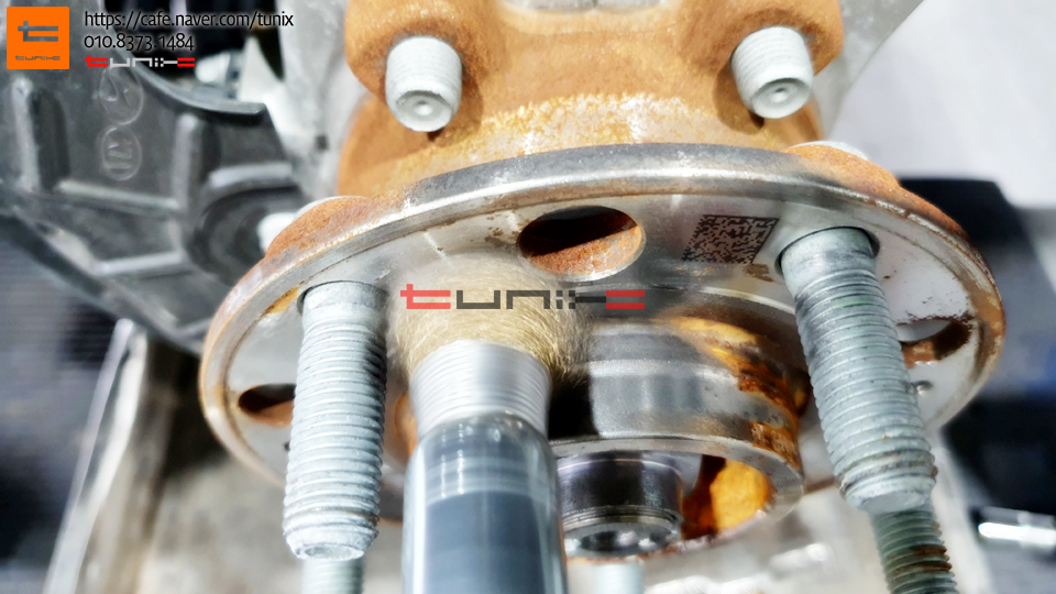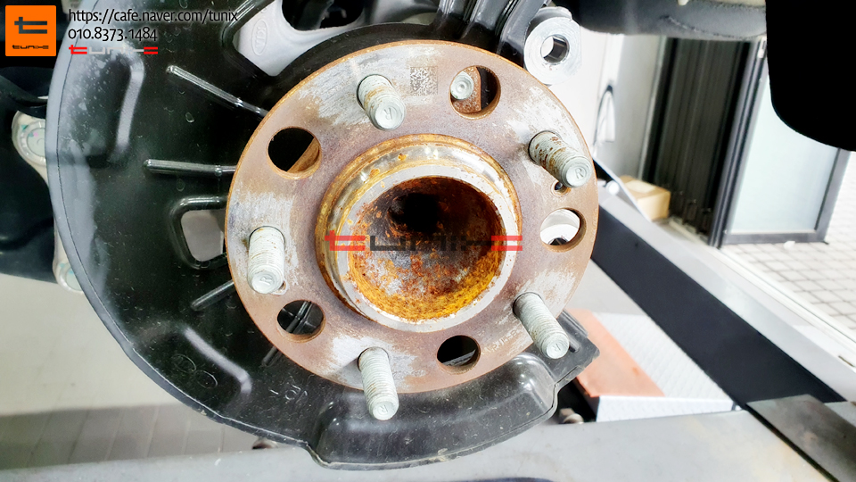 순정 브레이크를 탈착후 허브에 녹을 깨끗히 제거해줍니다