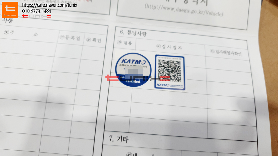 튜닝인증 스티커입니다