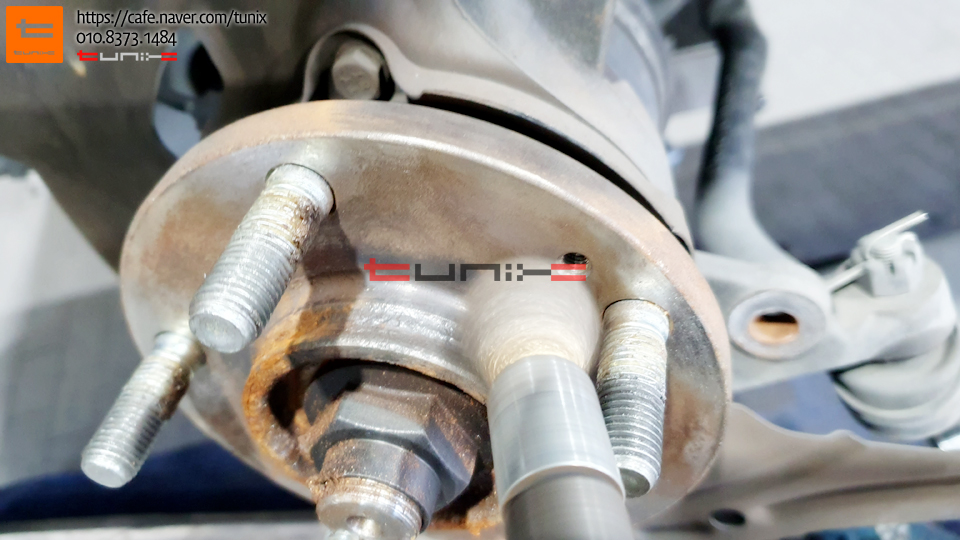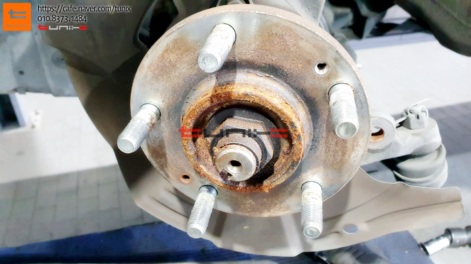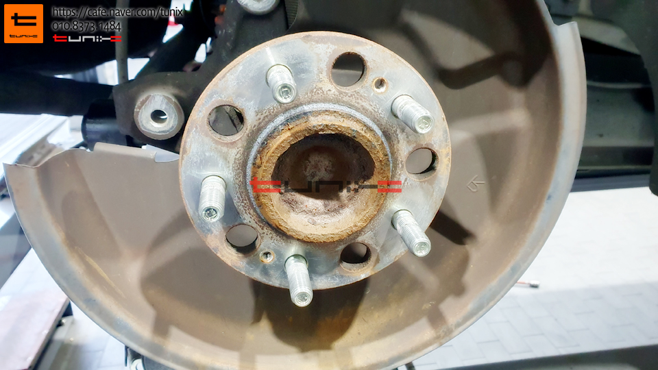 순정 브레이크를 탈착후 허브에 녹을 깨끗히 제거해줍니다