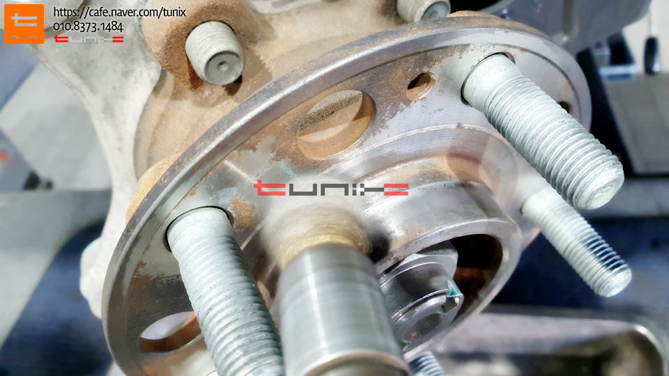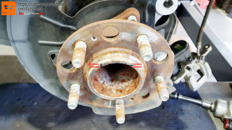 순정 브레이크를 탈착후 허브에 녹을 깨끗히 제거해줍니다