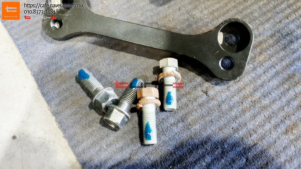 브라켓 캘리퍼는 볼트본드와 토크렌치를 사용하여 꼼꼼히 장착해줍니다