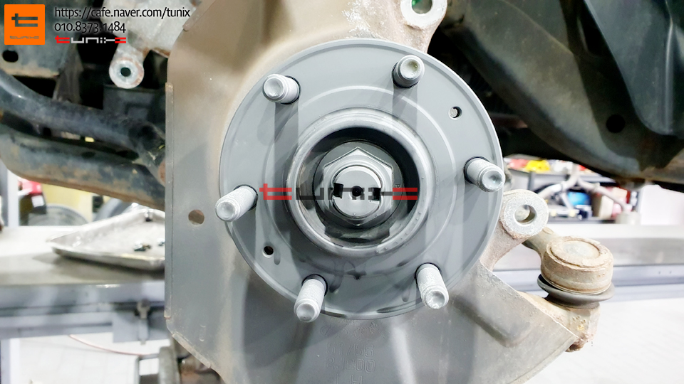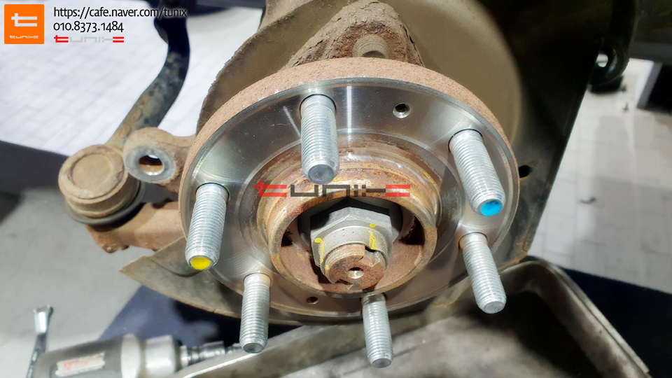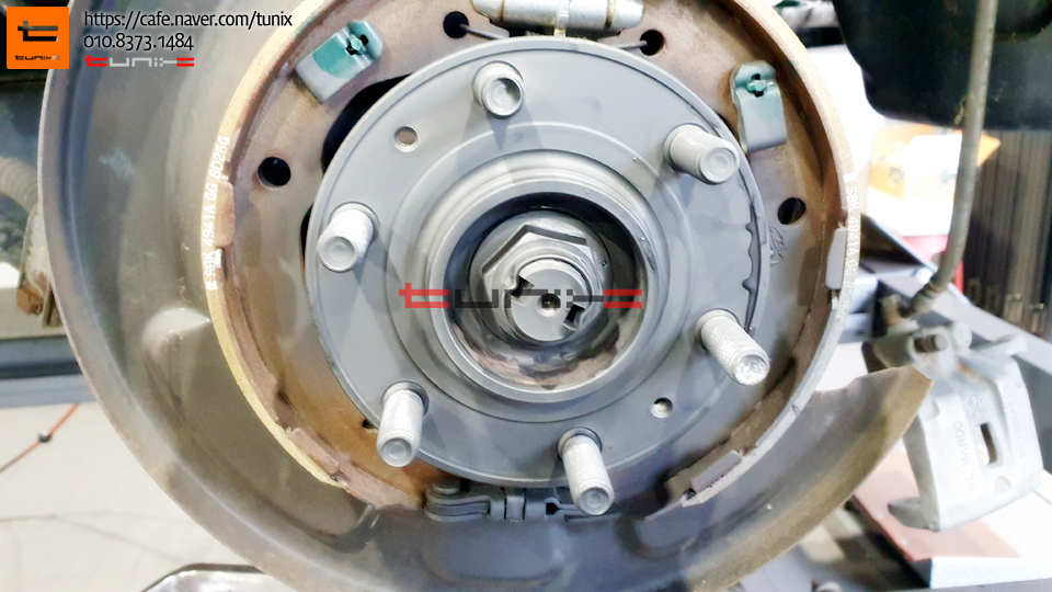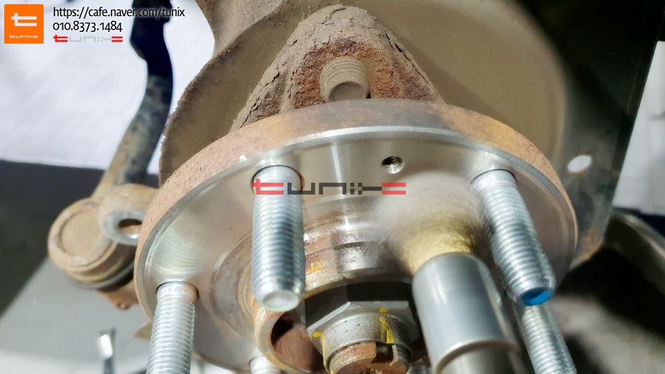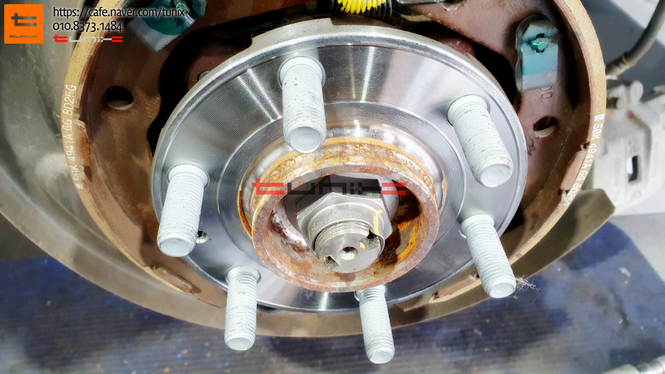 순정 브레이크를 탈착후 허브에 녹을 깨끗히 제거해줍니다