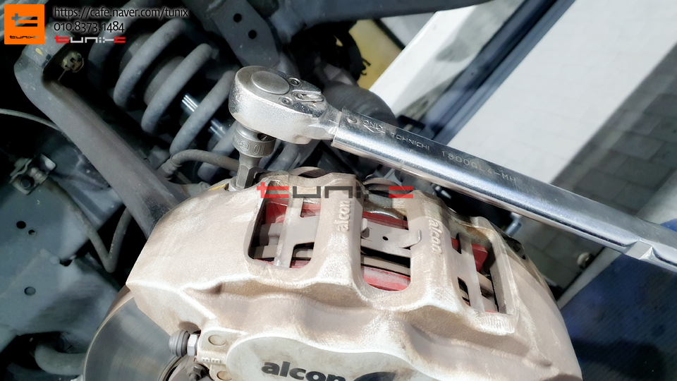 캘리퍼는 토크렌치 볼트본드를 사용하여 재장착해줍니다