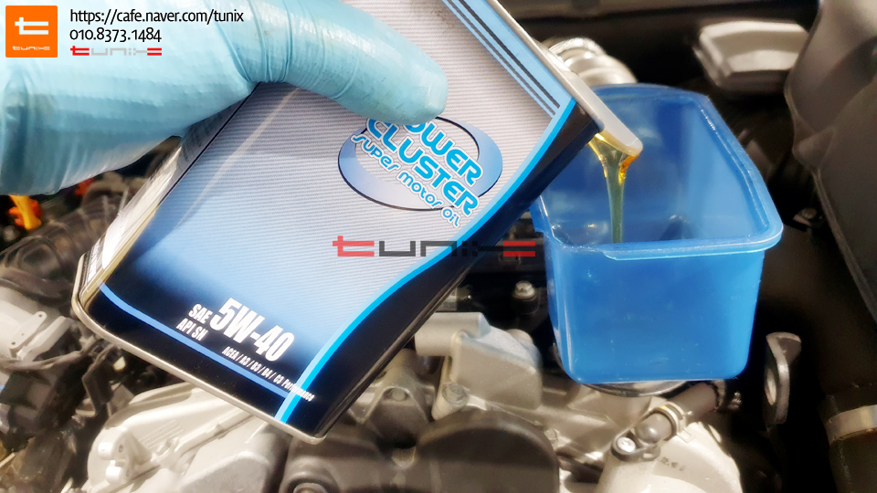 잔유제거후 깔끔하게 엔진오일교환하는 튜닉스에 방문하였습니다