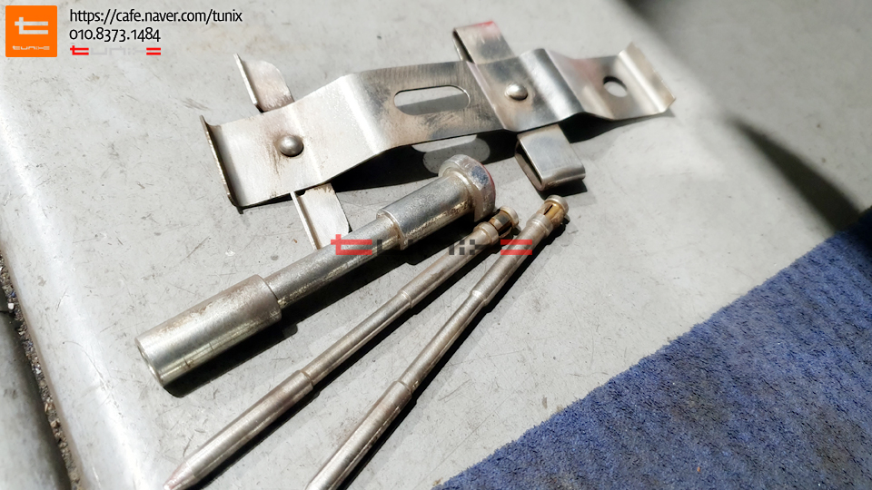 패드교체를 위해서 탈착한 패드핀 클립을 먼저 깨끗히 세척해줍니다