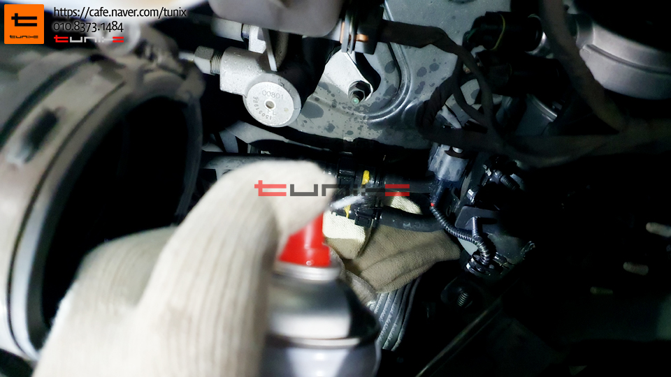 연료필터 브라켓 호스라인을 깨끗히 세척하여