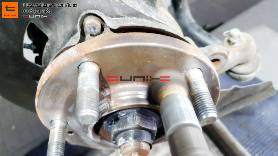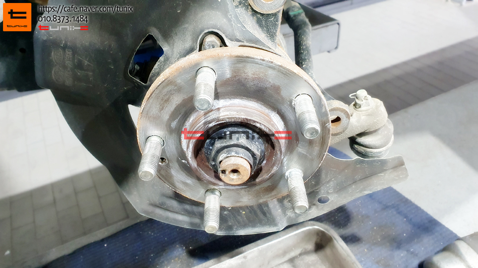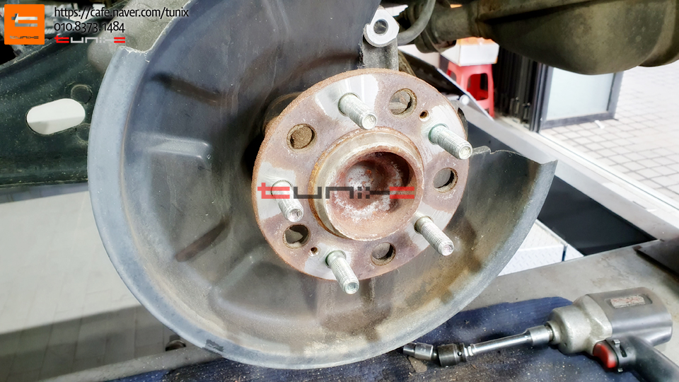순정 브레이크를 탈착후 허브에 녹을 깨끗히 제거해줍니다