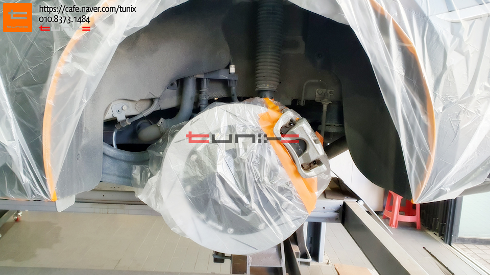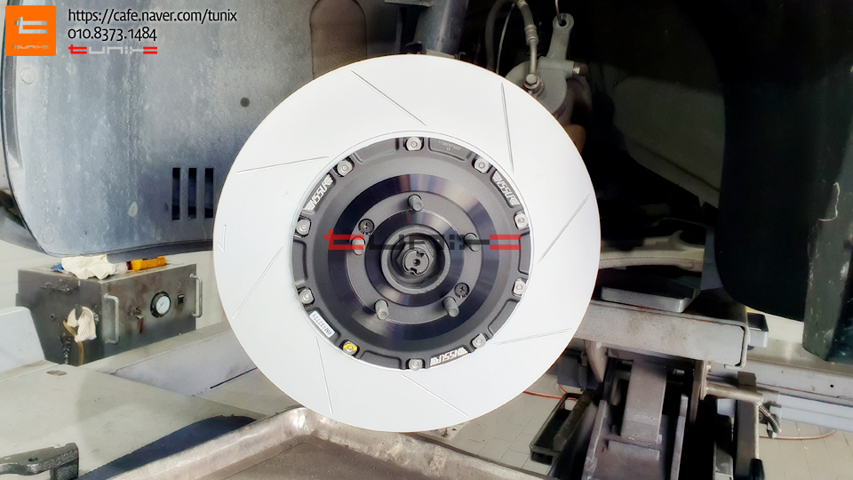 꼼꼼히 360mm경량디스크와 브라켓 캘리퍼를 장착해줍니다
