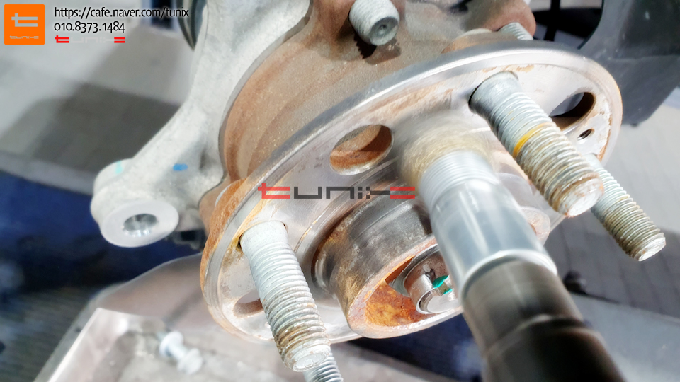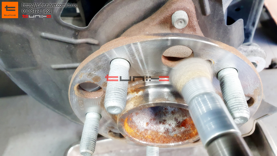 순정 브레이크를 탈착후 허브에 녹을 깨끗히 제거해줍니다