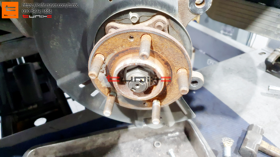 순정 브레이크를 탈착후 허브에 녹을 깨끗히 제거해줍니다