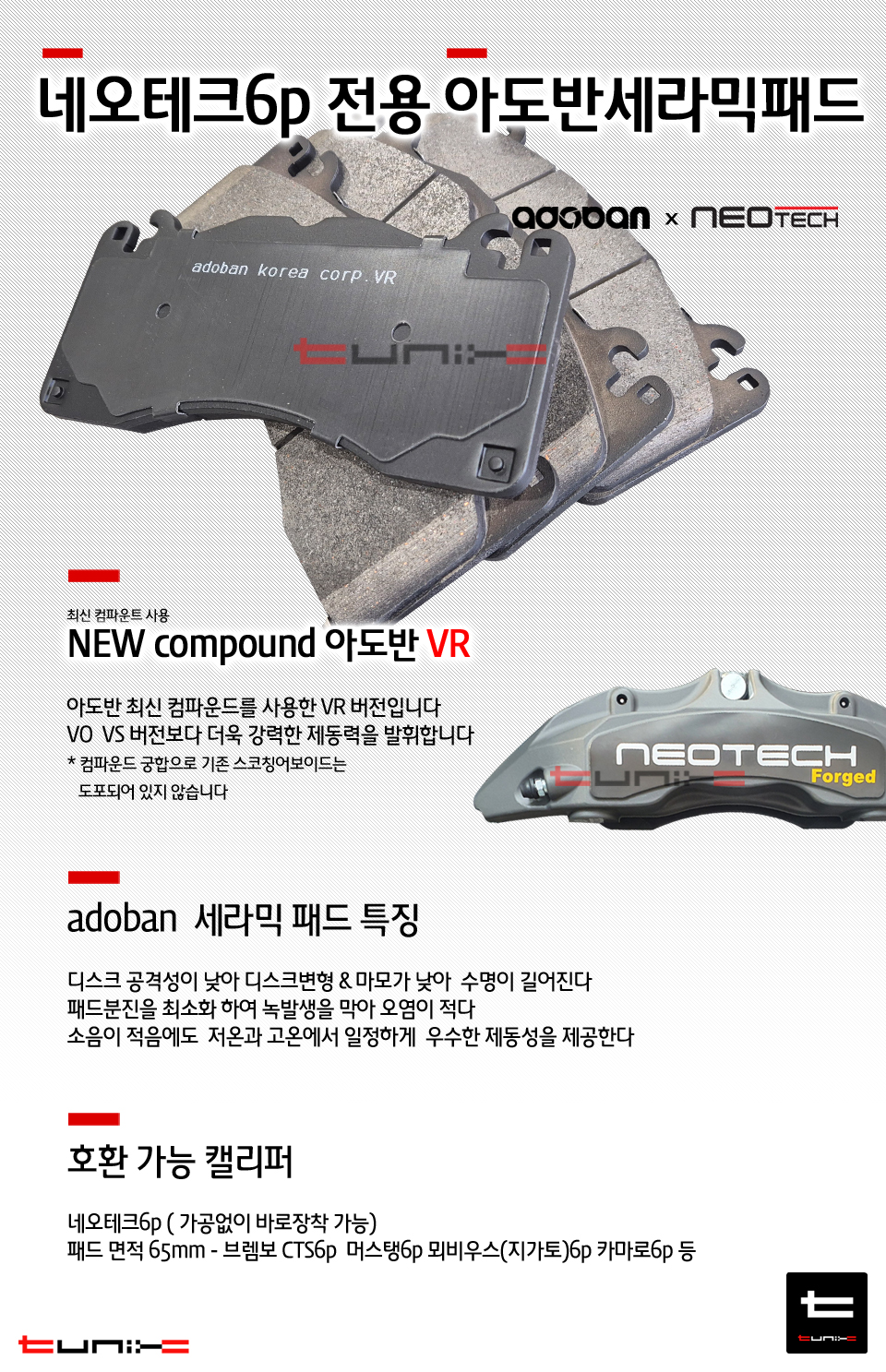 네오테크6p패드 NF6p 전용 아도반 세라믹 최신버전 VR패드 브렘보 65mm패드 : 튜닉스-TUNIX