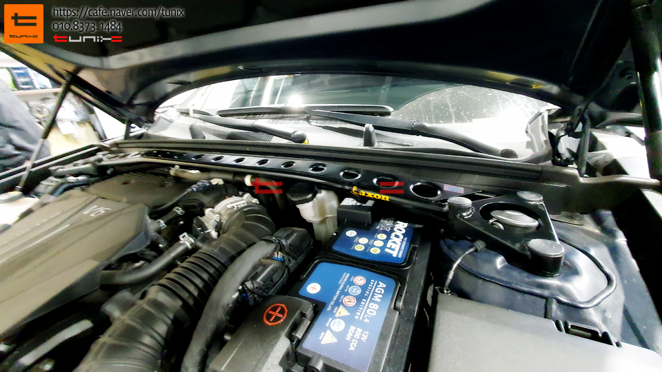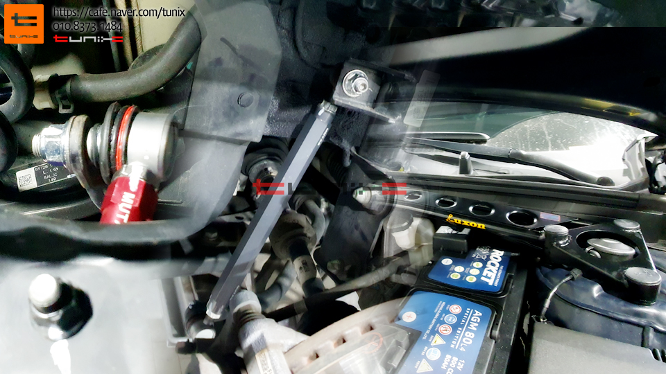 엔진룸에 스트럿바를 토크렌치를 사용하여 꼼꼼히 장착해주었습니다
