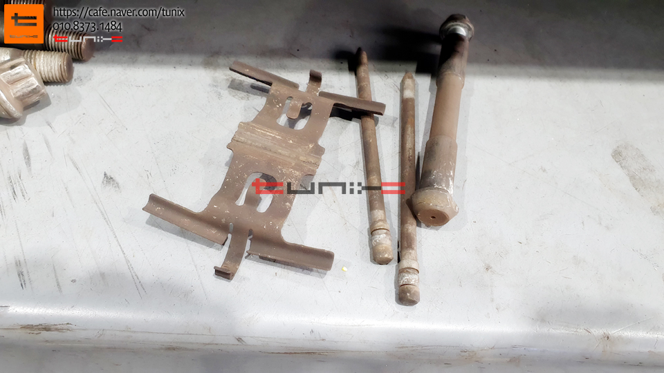 패드교체를 위해서 탈착한 패드핀 클립을 먼저 깨끗히 세척해줍니다