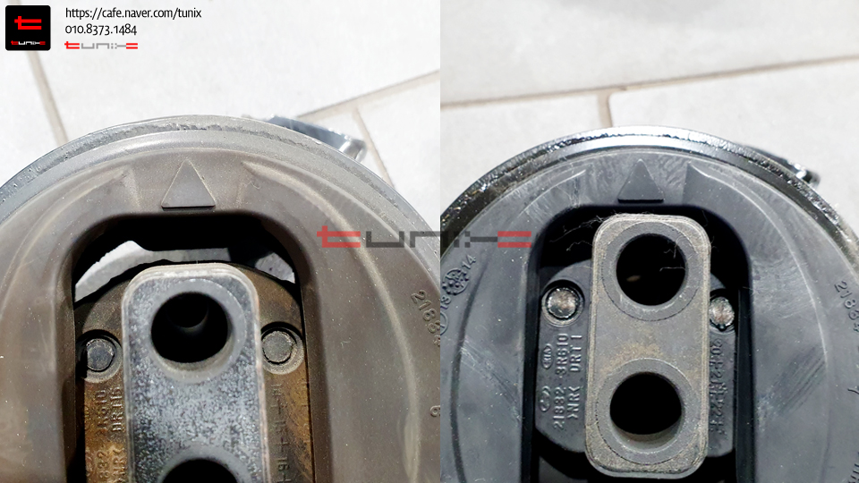 탈착한 엔진미미와 신품 엔진미미 비교사진입니다