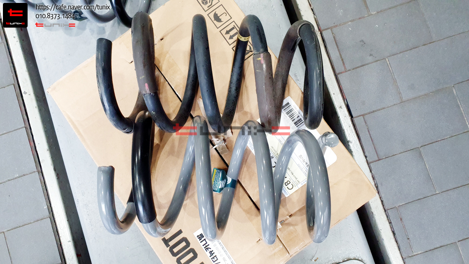 탈착한 순정스프링과 빅풋업스프링 비교사진입니다