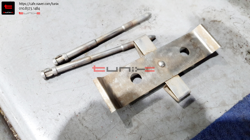 패드교체르 위해서 탈착한 패드핀크립을 먼저 깨끗히 세척해줍니다