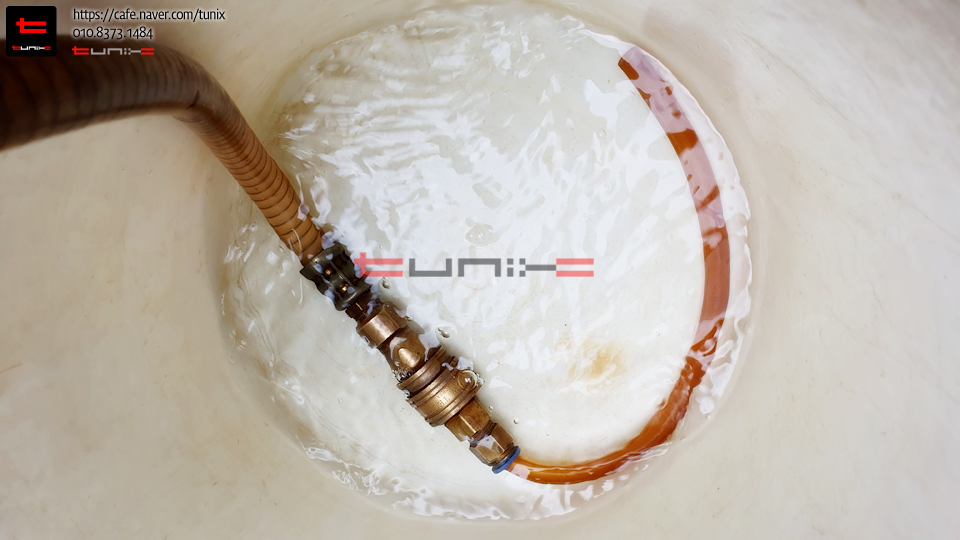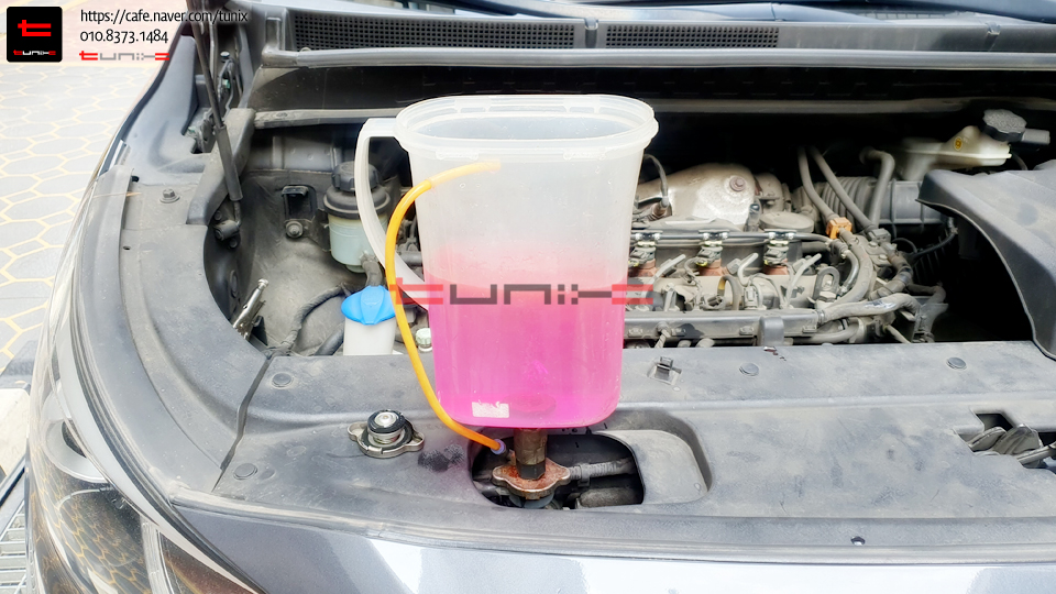 5차까지 순환하니 기존 녹색부동액이 깨끗히 플러싱되었습니다