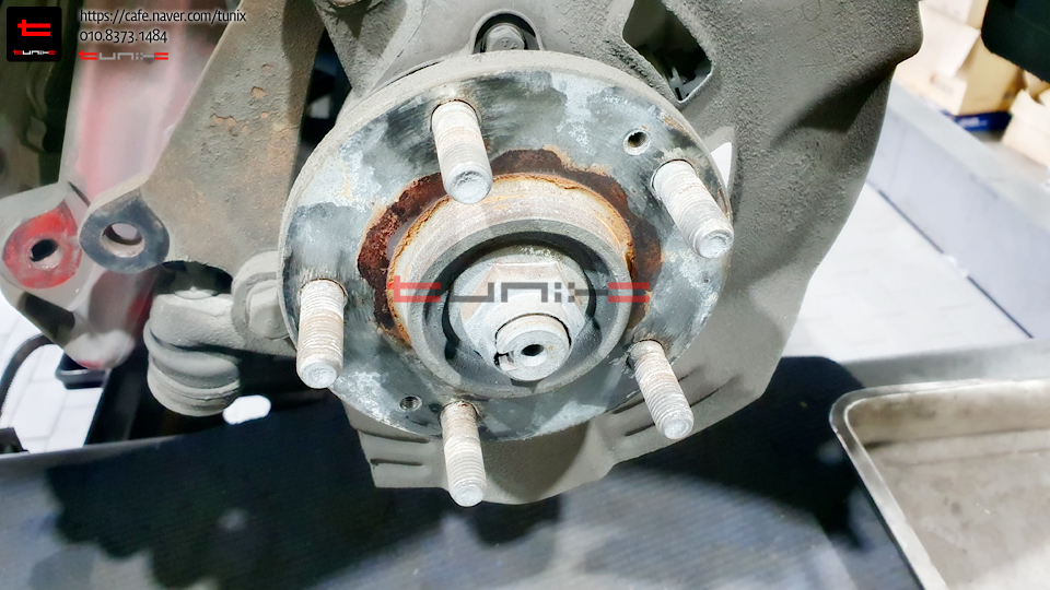 디스크 탈착후 허브 녹정리, 방청작업을 먼저해줍니다