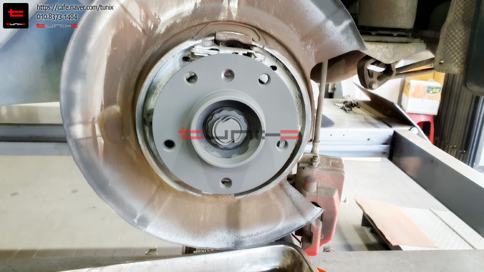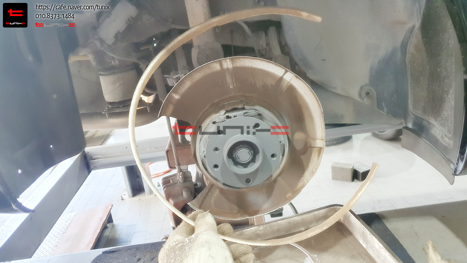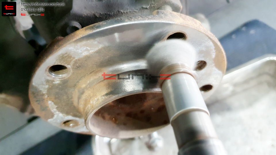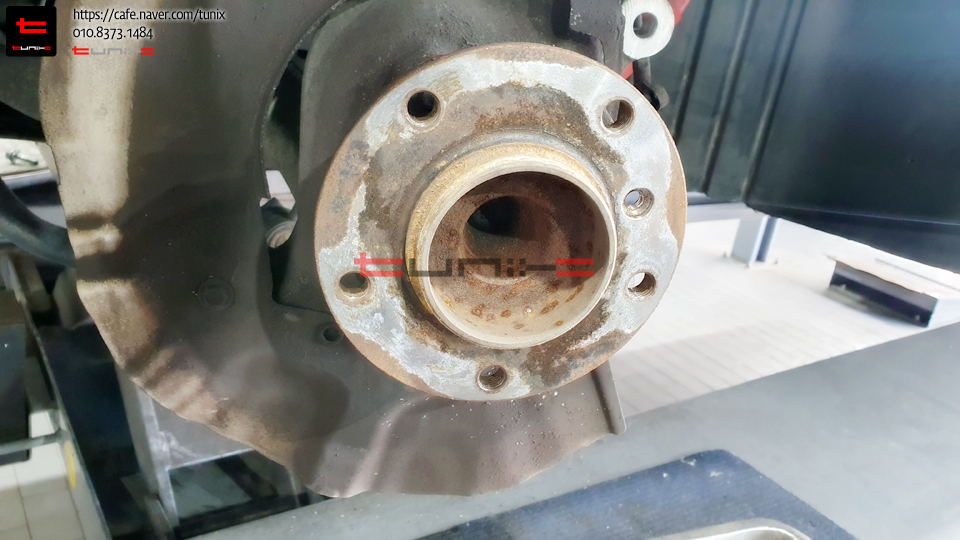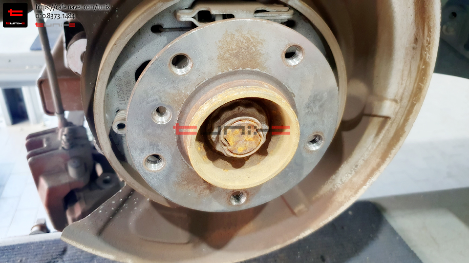 순정 브레이크를 탈착후 허브에 녹을 깨끗히 제거해줍니다