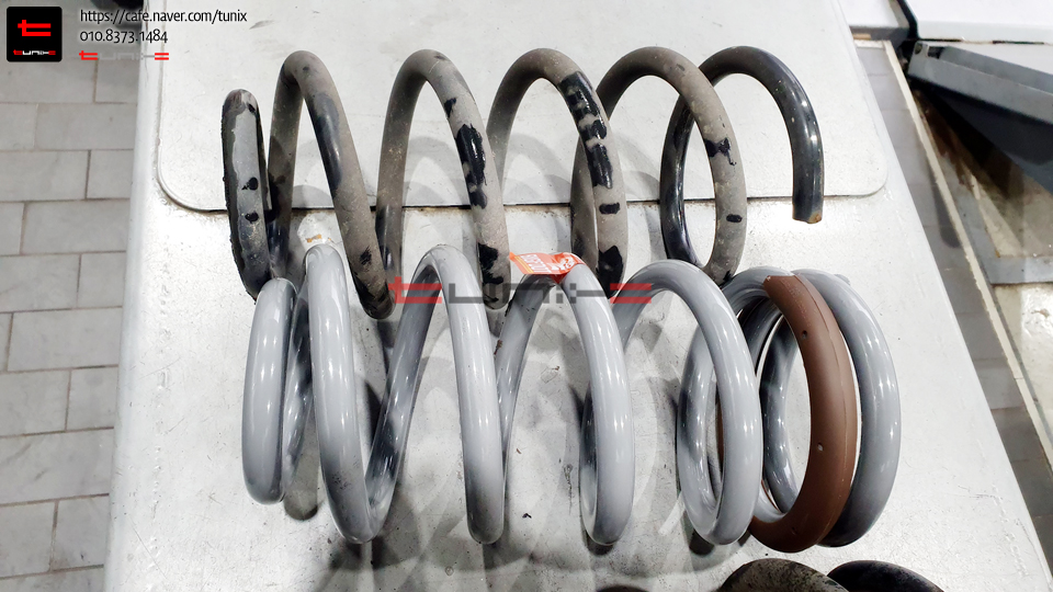 탈착한 순정스프링과 빅풋업스프링 비교사진입니다