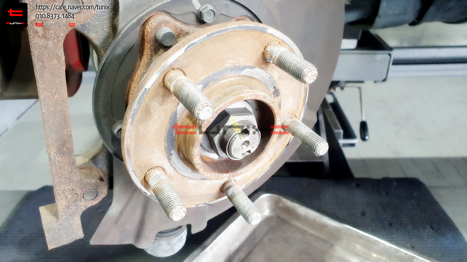 디스크 탈착후 허브 녹정리, 방청작업을 먼저해줍니다