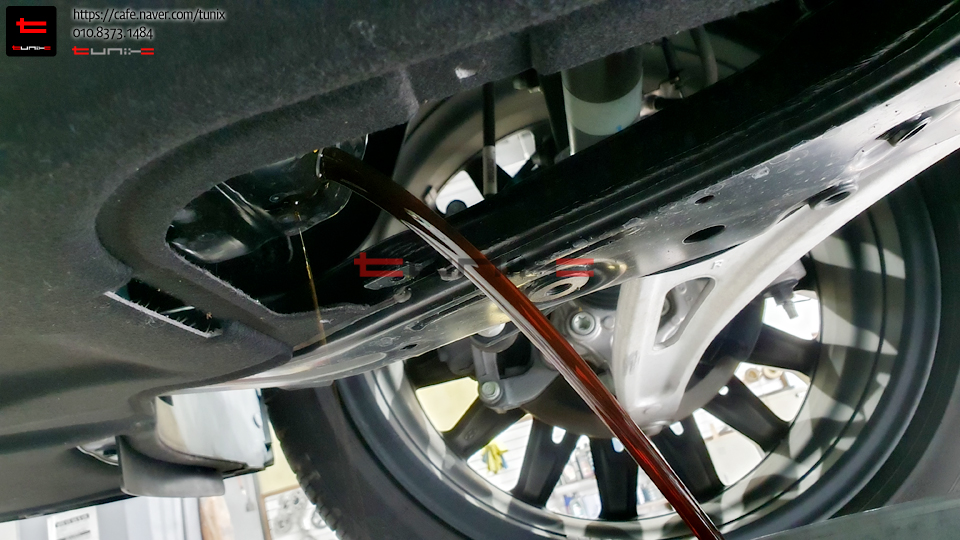 엔진오일을 교환을 위해서 잔유제거후 깔끔하게 교환잘하는 튜닉스로 방문하였습니다