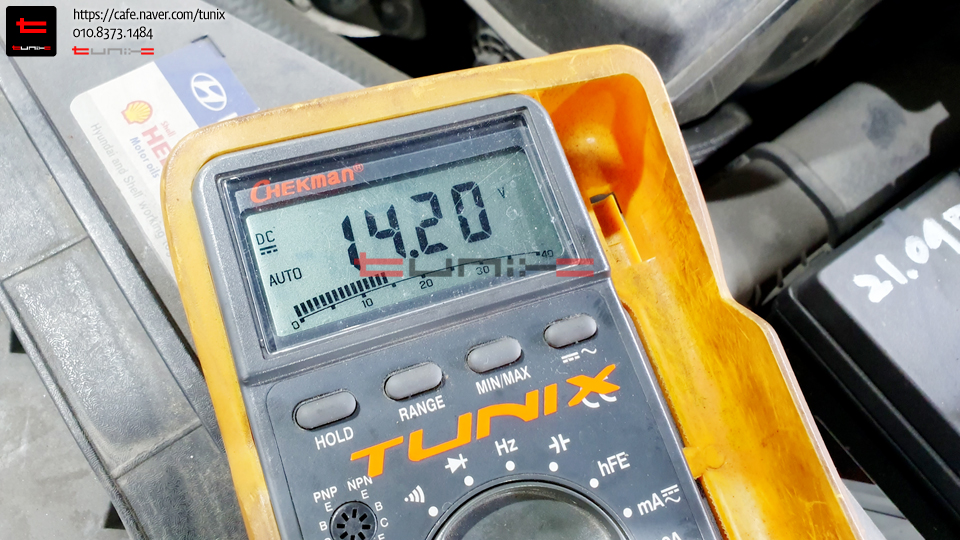 꼼꼼히 제너레이터를 교체하교 전압을 측정하고 시원하게 14V가 나오네요~~
