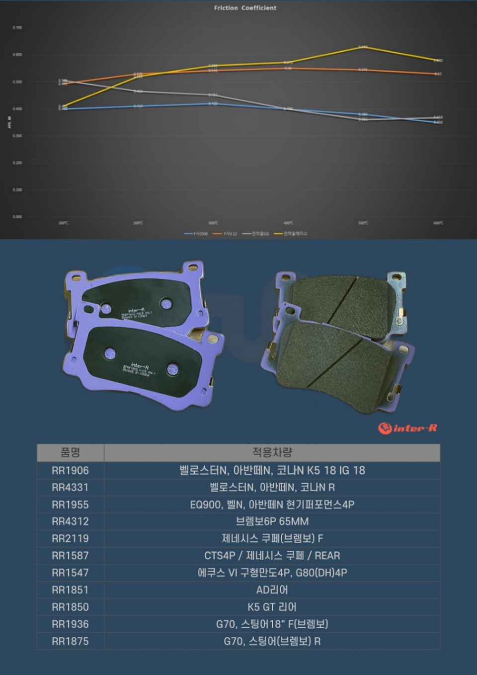 고성능 서킷용 인터알 리어레이스패드입니다