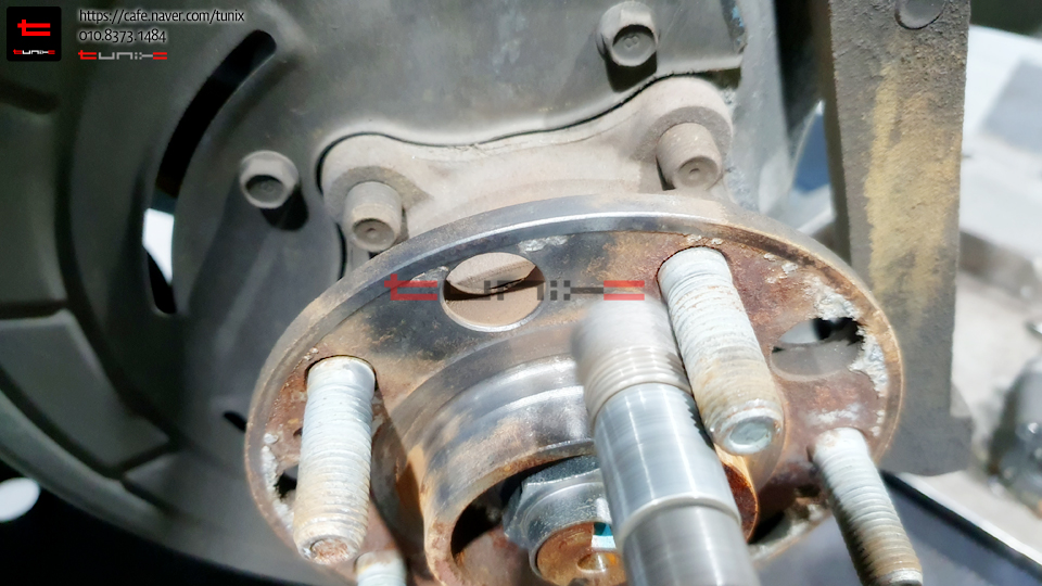 기존브레이크를 탈착후 허브에 녹을 깨끗히 제거해줍니다