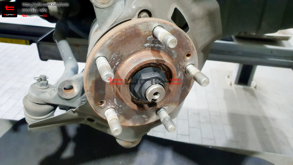 브레이크를 탈착후 허브에 녹을 깨끗히 제거해줍니다