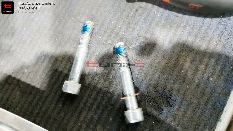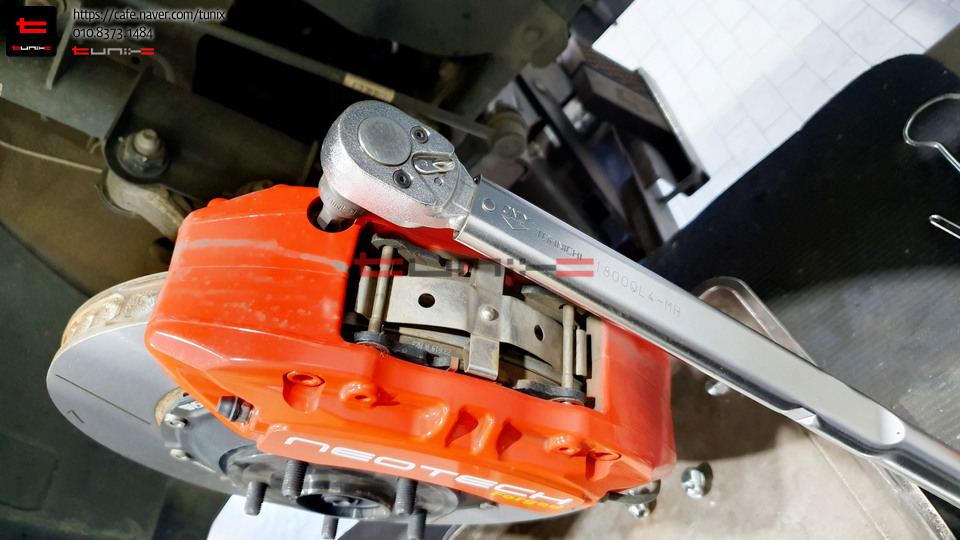 볼트본드와 토크렌치를 사용하여 캘리퍼를 재장착해줍니다