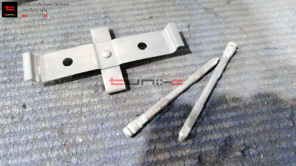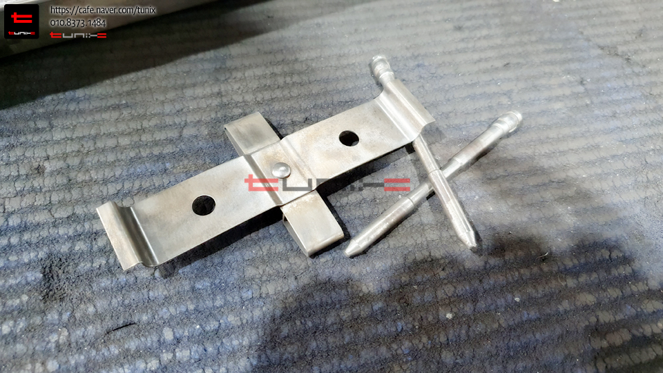패드교체를 위해서 탈착한 패드핀과 리턴클립을 먼저 깨끗히 세척해줍니다