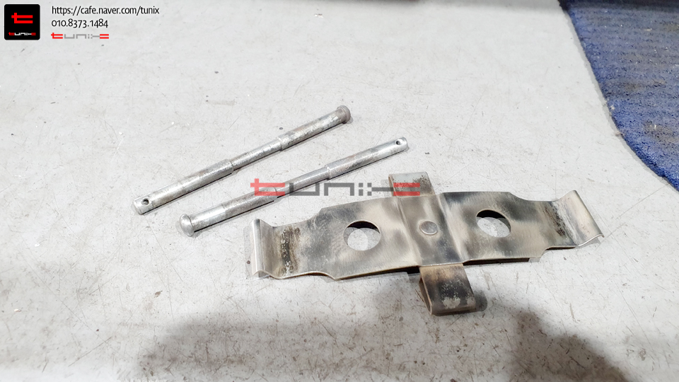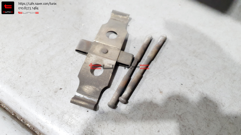 패드교체를 위해서 탈착한 패드핀 리턴클립을 먼저 깨끗히 세척해줍니다