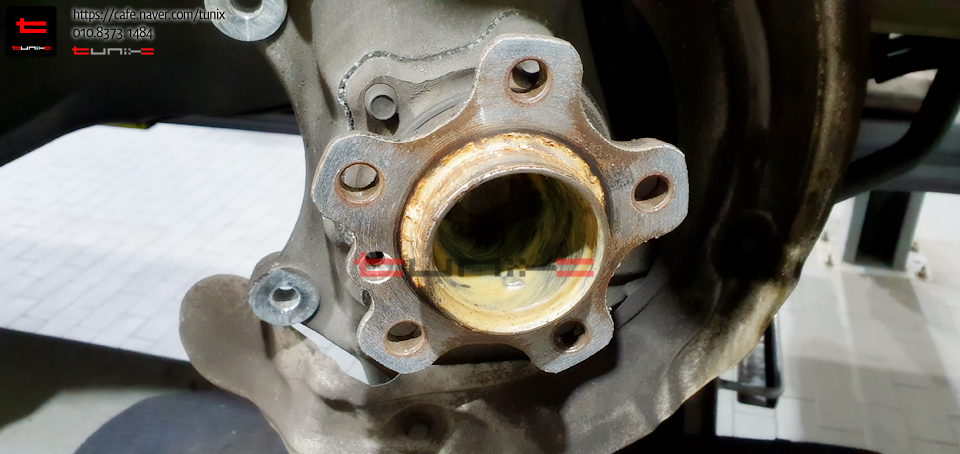 순정 브레이크를 탈착후 허브에 녹을 깨끗히 제거해줍니다
