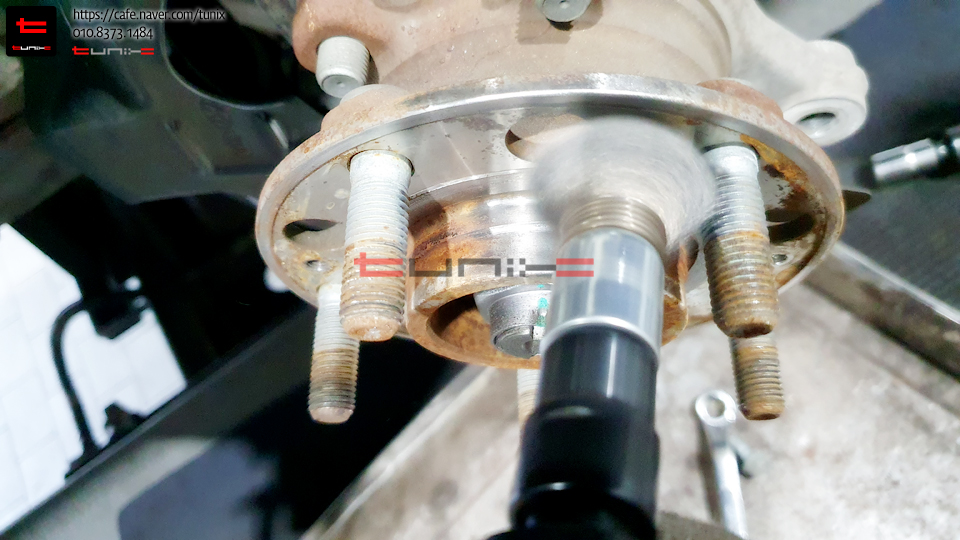 순정 브레이크를 탈착후 허브에 녹을 깨끗히 제거해줍니다