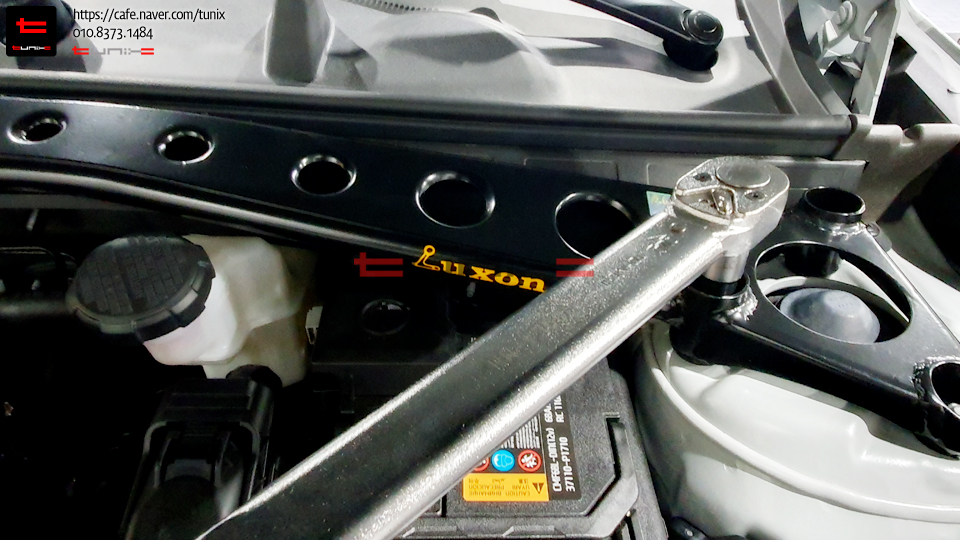 엔진룸에 토크렌치를 사용하여 꼼꼼히 룩손스트럿바 장착을 완료하였습니다