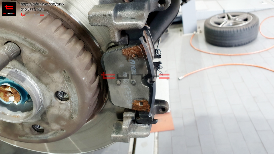 리어패드교체를 위해서 브레이크전문샵 튜닉스로 방문하였습니다
