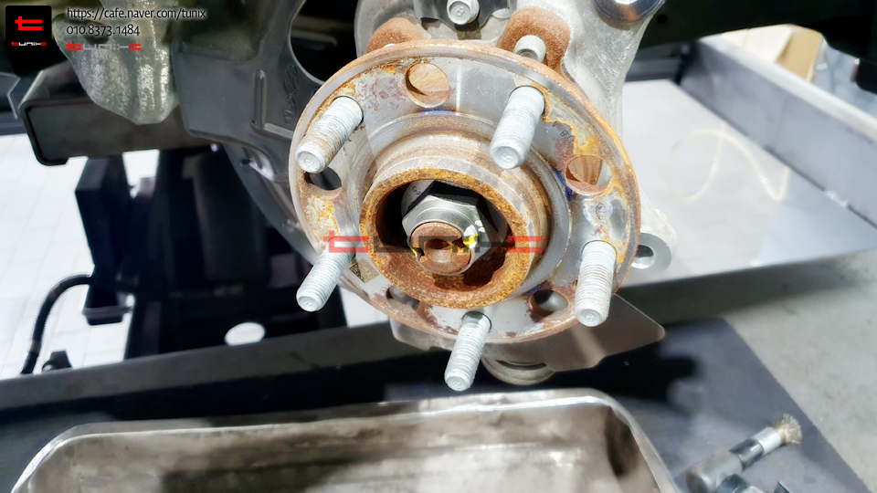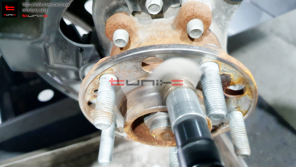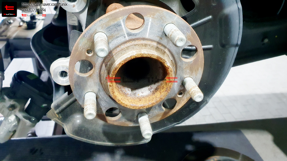 순정 브레이크를 탈착후 허브에 녹을 깨끗히 제거해줍니다