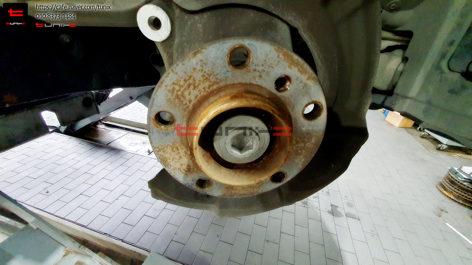 디스크 탈착후 허브 녹정리, 방청작업을 먼저해줍니다